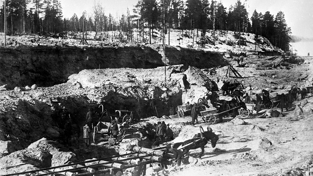 На этом грандиозном строительстве работали около 280 тысяч заключенных. Основными орудиями труда были тачка, кувалда, топор. Наиболее современным механизмом был деревянный журавль для перемещения камней-валунов. Стройка была засекречена, прокладкой канала руководило начальство НКВД СССР.В то время как Панамский канал длиной 80 км строился 28 лет, Суэцкий канал длиной 160 км — 10 лет, а Беломорканал длиной 227 км был пробит в скальных породах за год и девять месяцев.