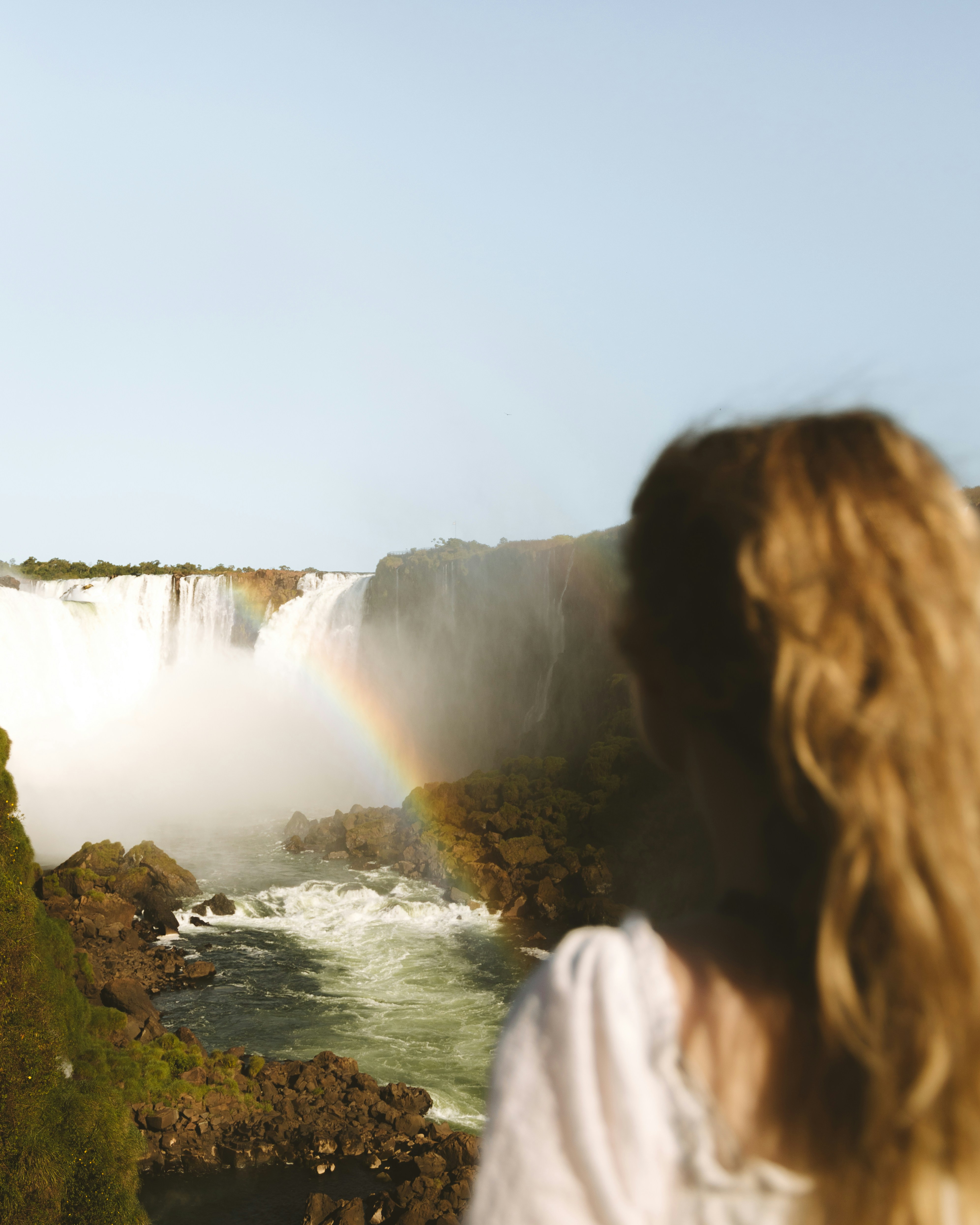 Looks at the waterfall — at random.