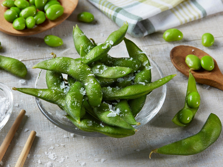 Edamame — bu yashil rangli pishmagan loviya novdasining bir turi bo‘lib, oqsil, E vitamini, kletchatka kabi ozuqaviy moddalarga boy. Taxminan 100 gramm mahsulotda 63 kilokaloriya: 4,7 gramm oqsil, 6,3 gramm uglevod va 2 gramm yog‘ mavjud. Sharqda uni soya sousi bilan birga iste’mol qilishadi, ammo qo‘shimcha souslar ko‘proq kaloriya berishini unutmaslik lozim.