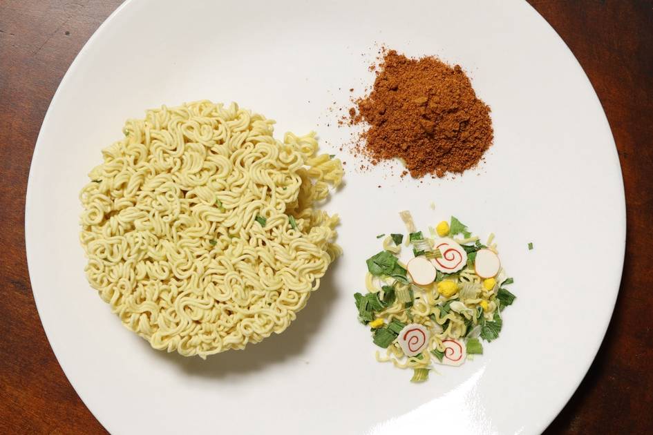 Asosiy tarkibiy qismlar: bug‘doy uni, kraxmal, palma yog‘i, tuz, shakar va natriy glutamat. Achchiq turlarida esa chili qalampiri kukuni va ekstraktlari mavjud. Garchi ba’zi ishlab chiqaruvchilar tarkibda vitaminlar va laktobakteriyalar borligini da’vo qilsa-da, ularning miqdori ko‘rsatilmagani sababli, biror ijobiy ta’sir kutish qiyin.